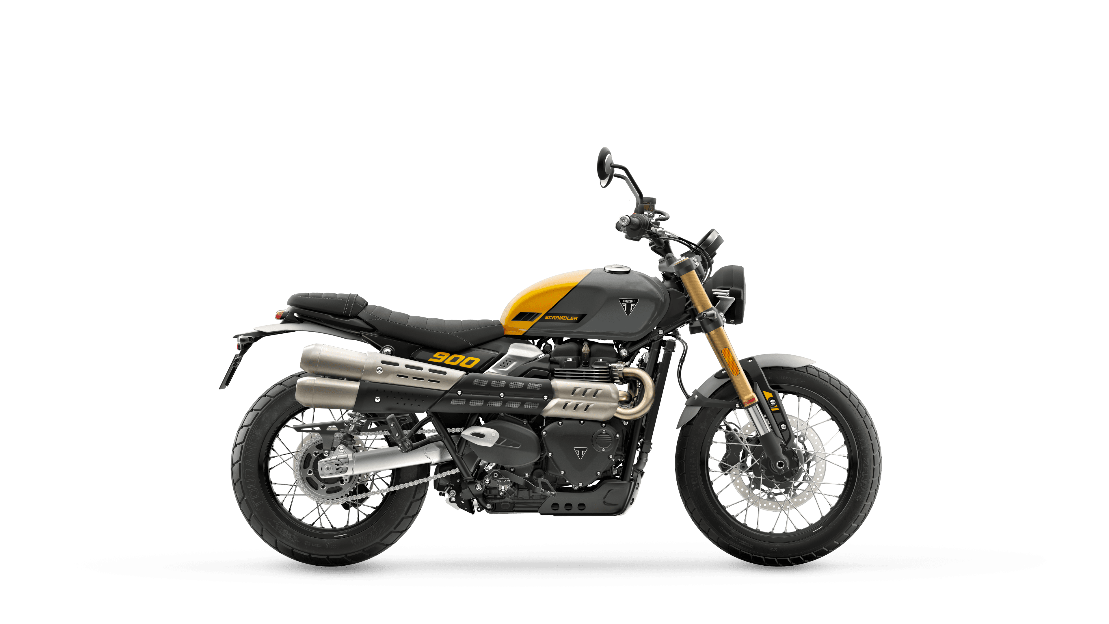 Tracing their roots back to the very first factory competition Scramblers and desert racers of the 60s, their commanding silhouette blends classic dirt racer styling influences with timeless Triumph design DNA. With a relaxed and confident riding position, easy handling, rugged character and real all-terrain credibility, Triumph Scramblers deliver fun and capability with style.