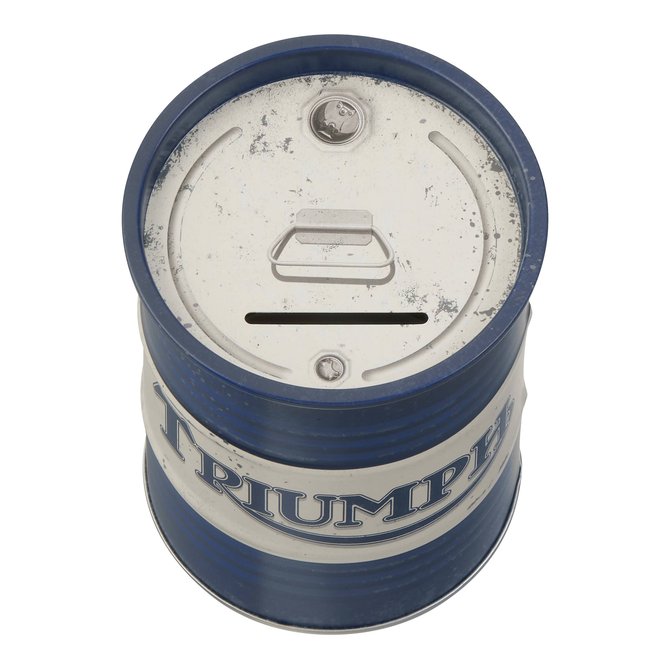 The best way to collect loose change or to save towards your new bike fund. The Triumph Barrel Money Tin makes a perfect addition to any rider's office or workshop.Combining authenticity with practicality, this money box is crafted from durable steel sheet metal ensuring it withstands daily use. The top slot allows for easy deposit of coins and bills, while keeping your savings safe inside.