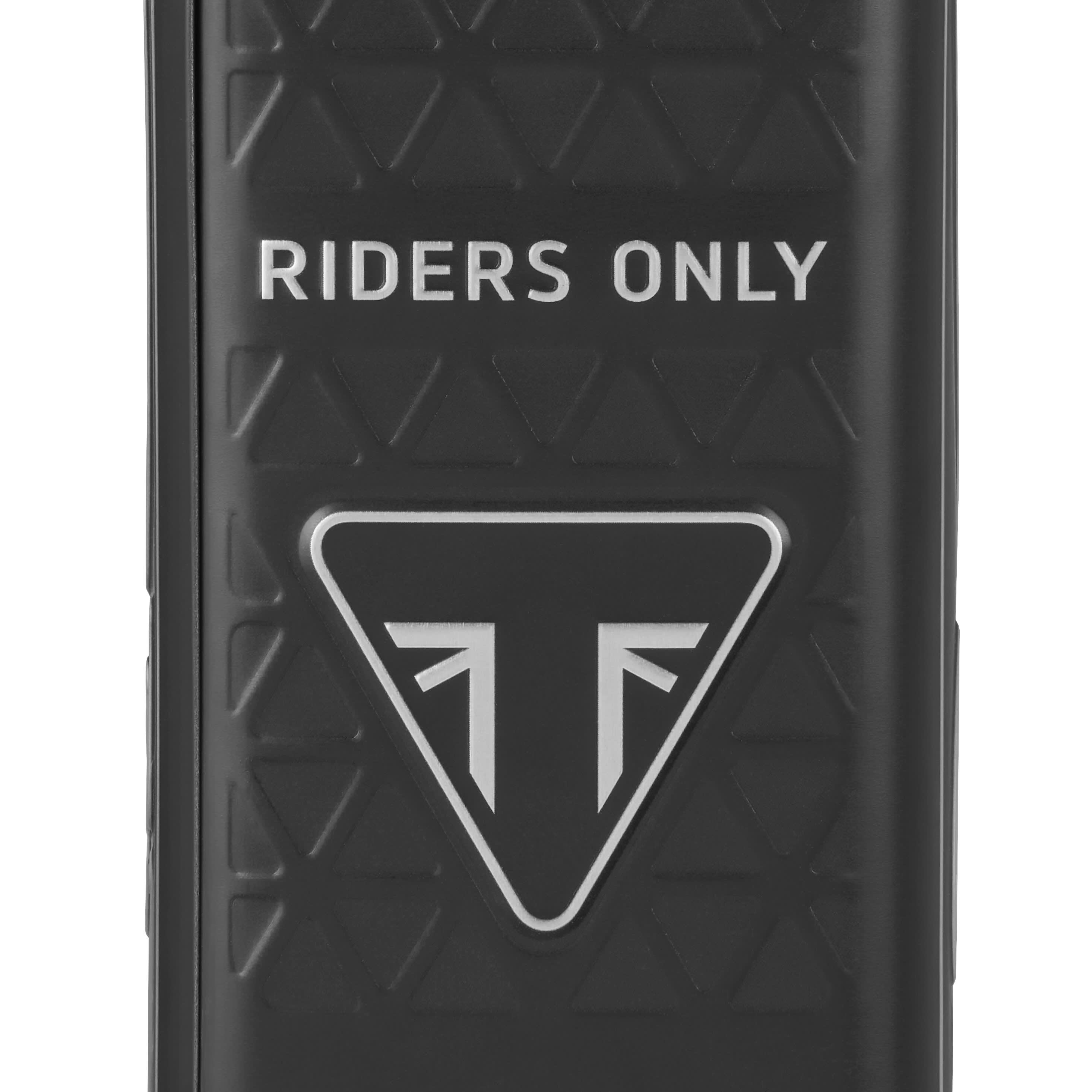 Its sleek black design adorned with the iconic Triumph Motorcycle Logo and "For The Ride" motif, adds a touch of nostalgia to any space.
