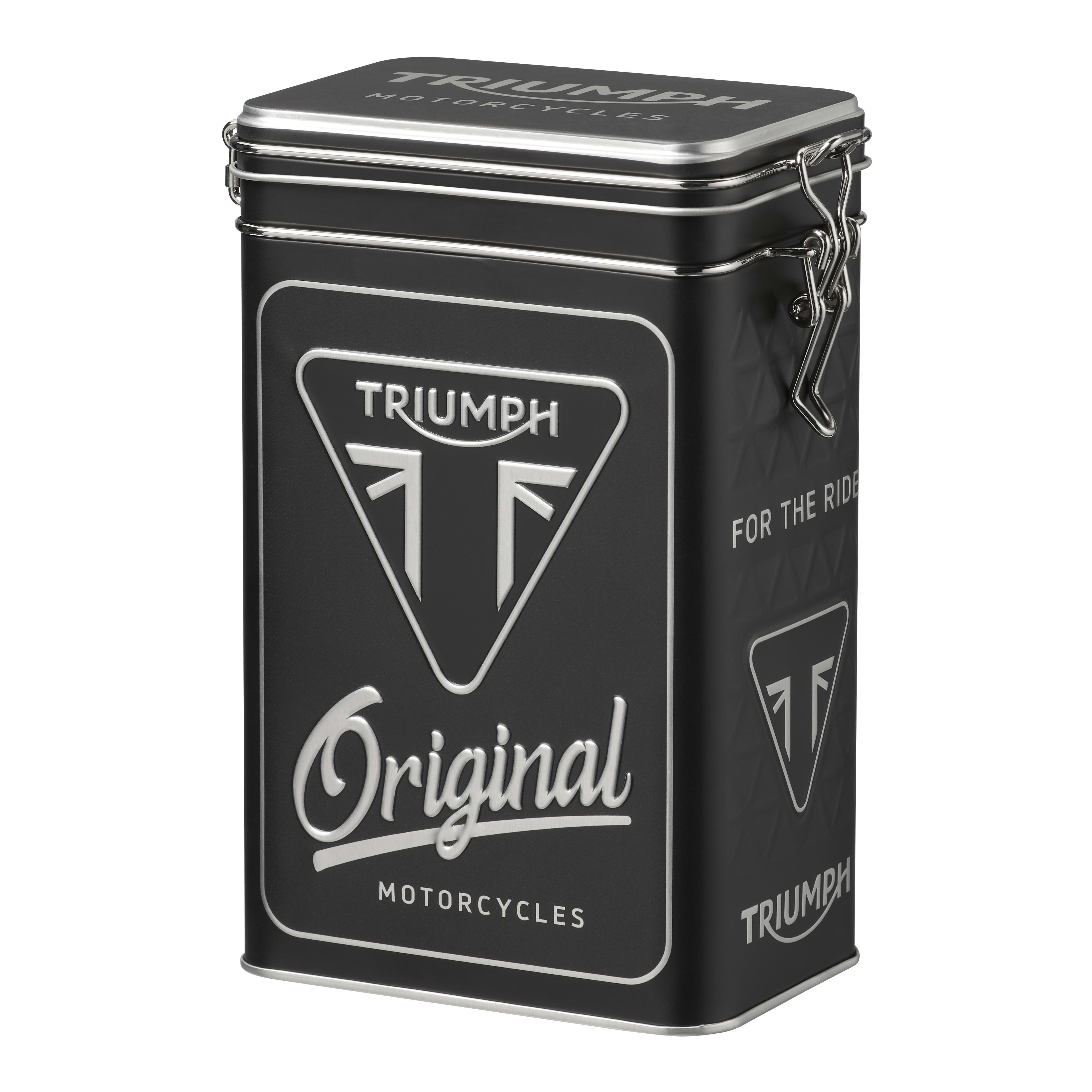 Organise your space with the Triumph Original Clip Top Tin, designed for motorcycle enthusiasts. Perfect for storing tea, coffee, snacks or small essentials.Combining authenticity with practicality, the 1.3 liters tin box is crafted from durable steel sheet metal, complete with a high-quality steel clap closure that securely seals the contents inside. Also featuring a food-safe plastic seal which ensures that your provisions remain fresh and aromatic for longer periods.