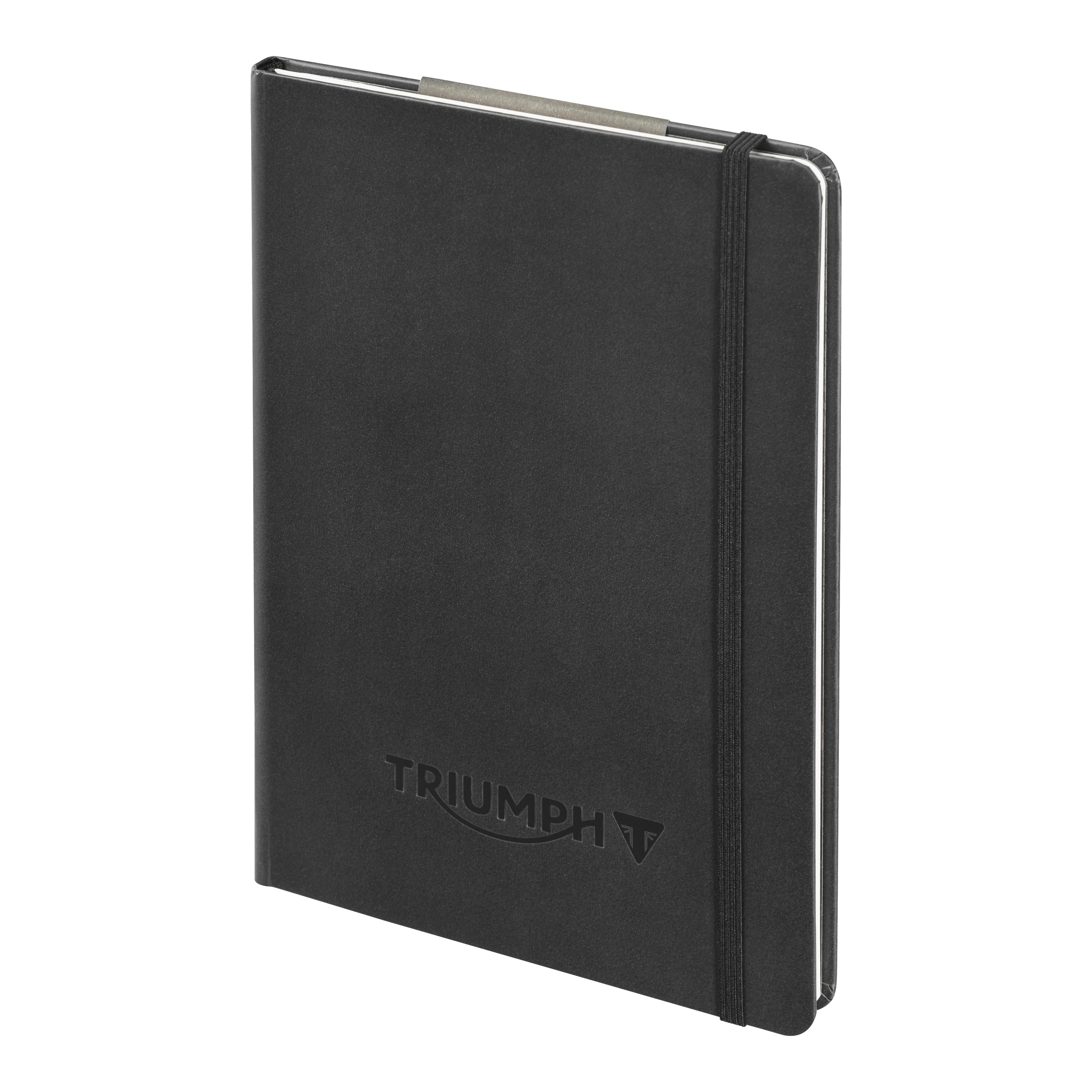 This A5 notebook features a black embossed hardcover, 128 dotted FSC‑certified pages, an elastic band, bookmark, and inner pocket - perfect for notes, lists, and daily use.
