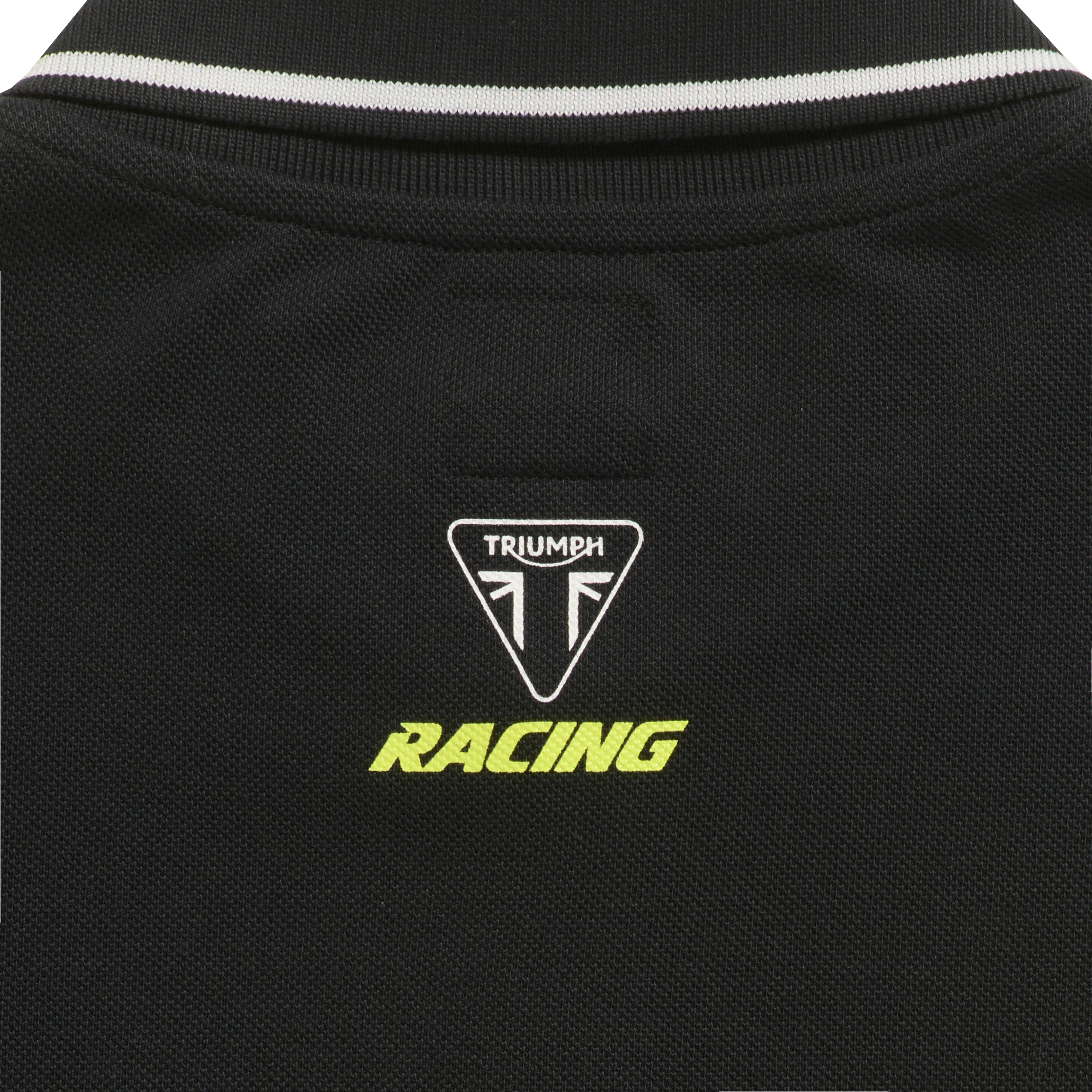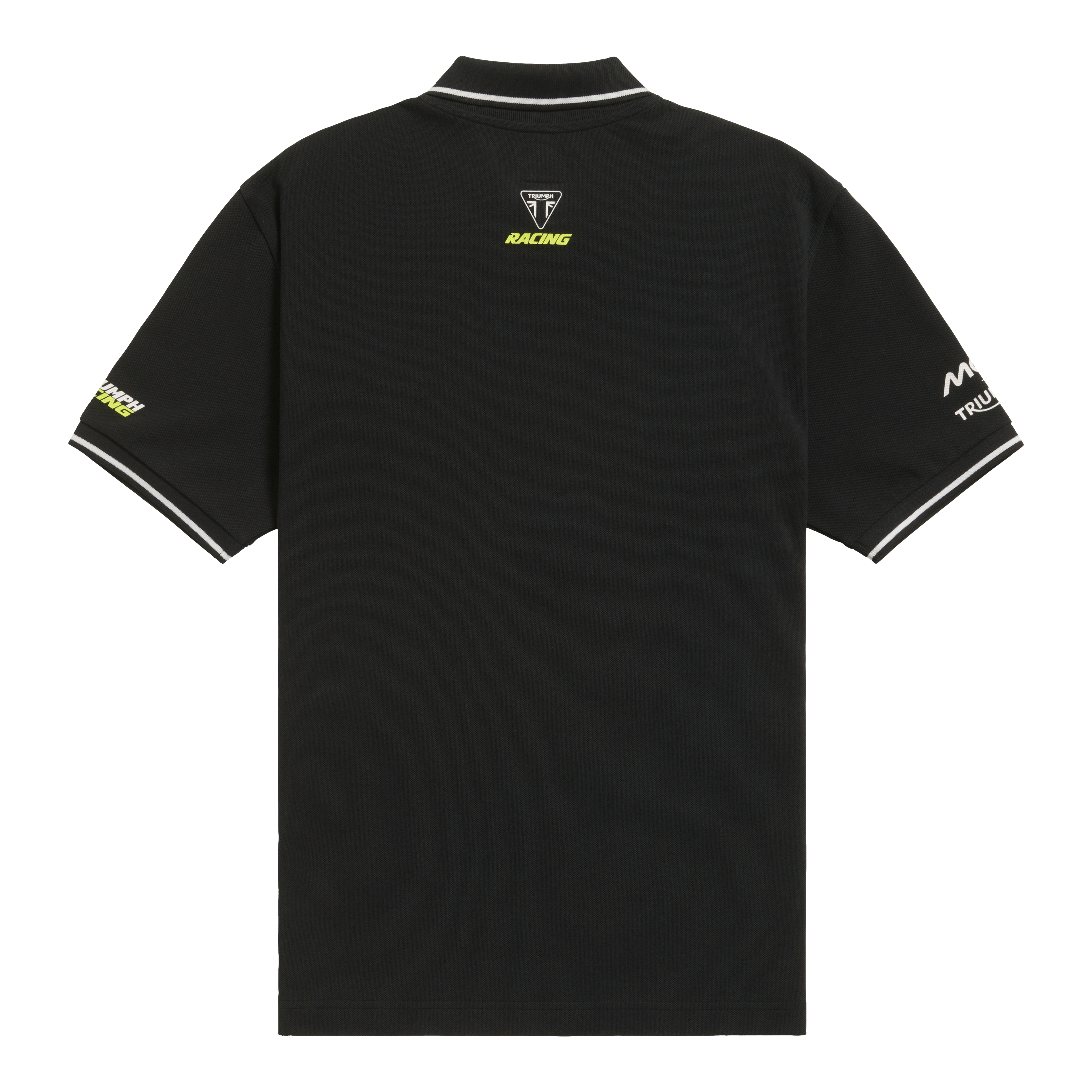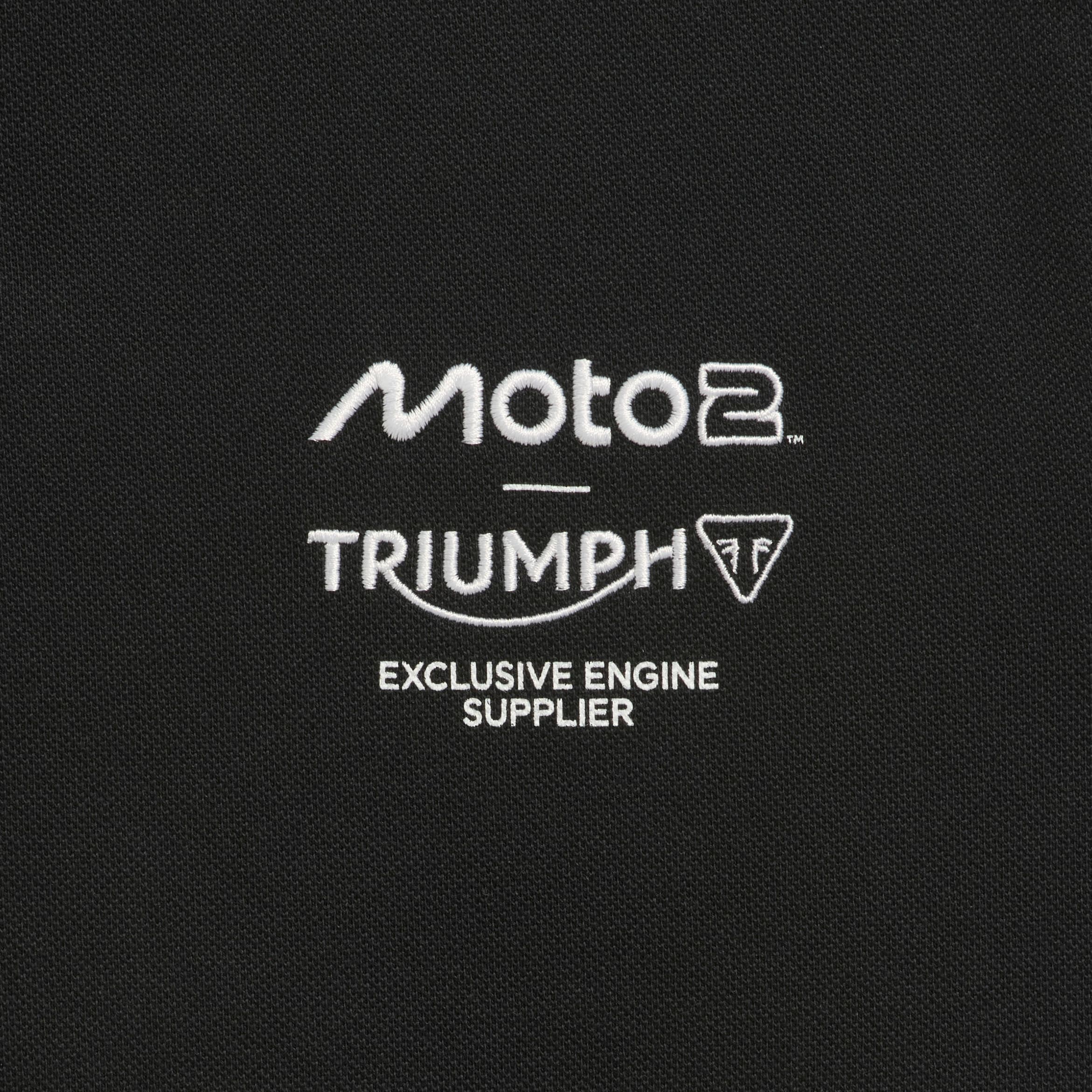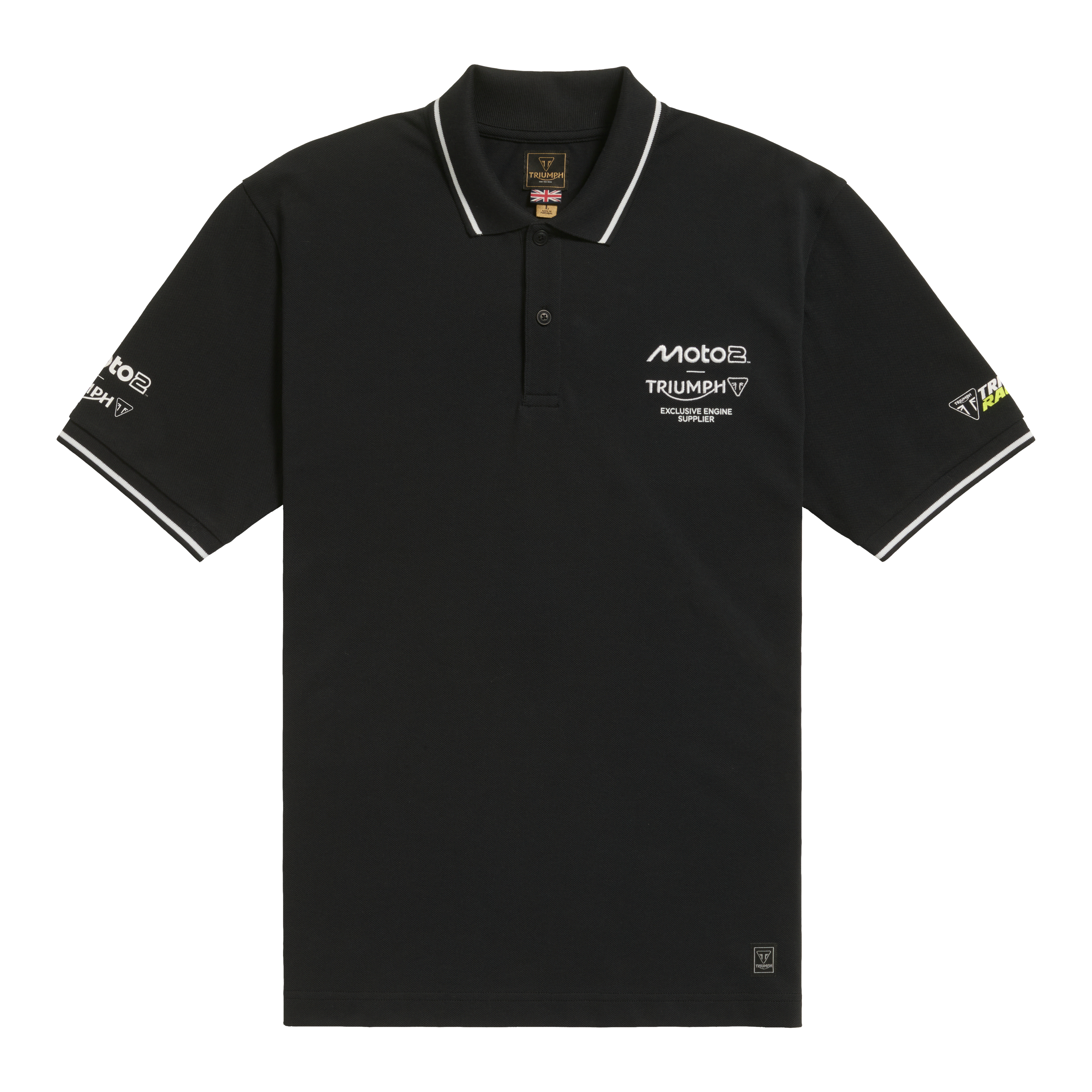 Classic fit cotton polo shirt with official Triumph engine supplier logos.