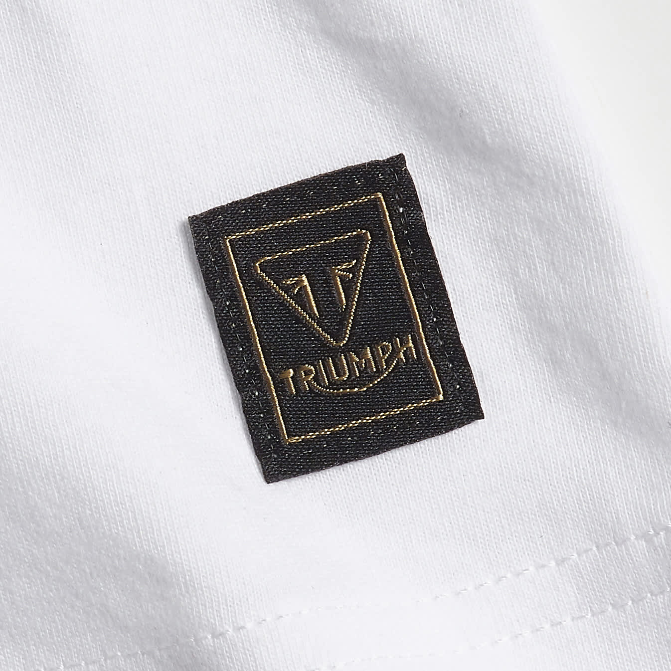 Womens 100% cotton crew neck short-sleeved tee with high quality embroidered Triumph logo and signature Triumph-branded woven label on the lower hem.