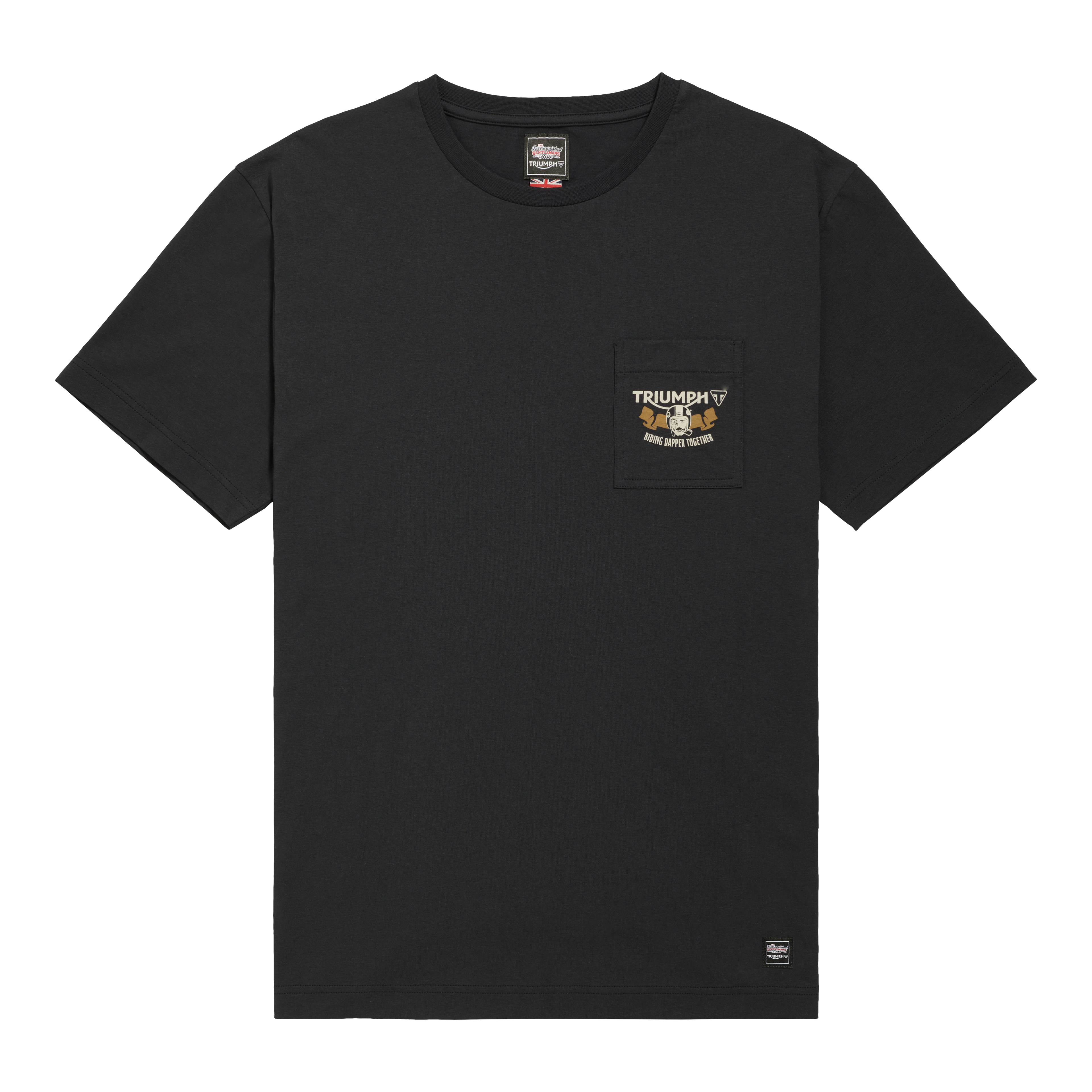 Look sharp and do your part to represent DGR off the bike with the Wallace Pocket Tee. Featuring original and exclusive co-branded Triumph and The Distinguished Gentleman's Ride 2026 design.