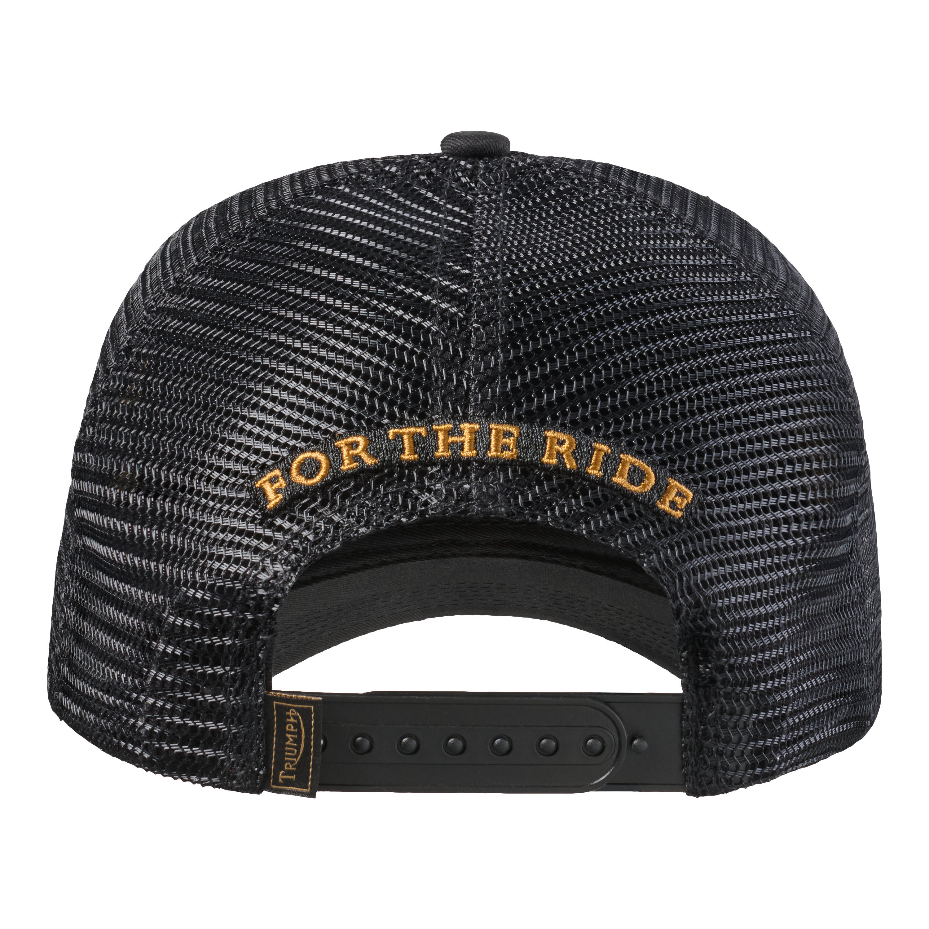 In true trucker cap style. Featuring a classic curved peak and mesh back for breathable all-day wear. It includes a snap-back fastening for a perfect fit and is finished off with an embroidered Triumph Heritage badge on the front.