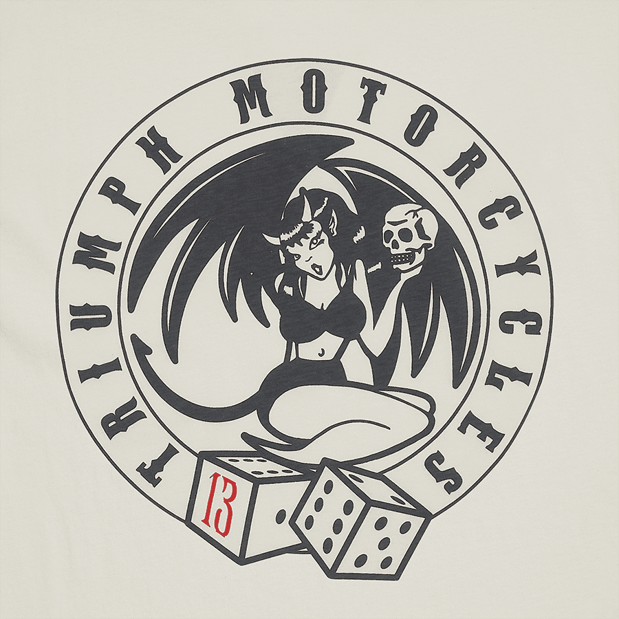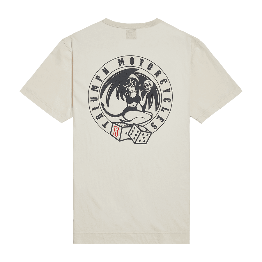 Classic crew neck tee with authentic V-insert neck detail and pocket to left chest. Bone 160gsm cotton jersey, featuring soft-feel Roller Dice graphic print to the backDisclaimer: This product does not include body armour. Casual and Heritage wear does not provide the same protection as Rider wear.