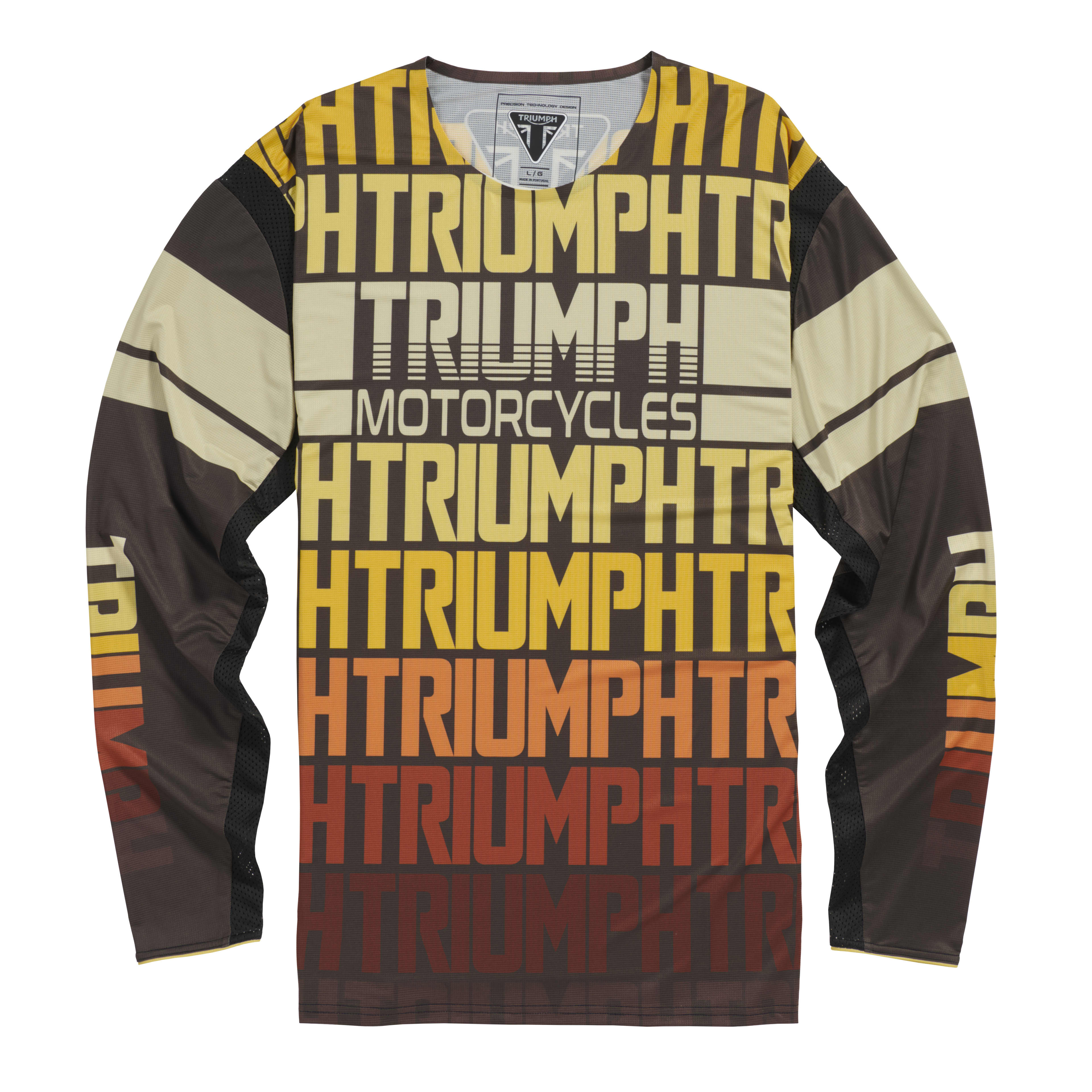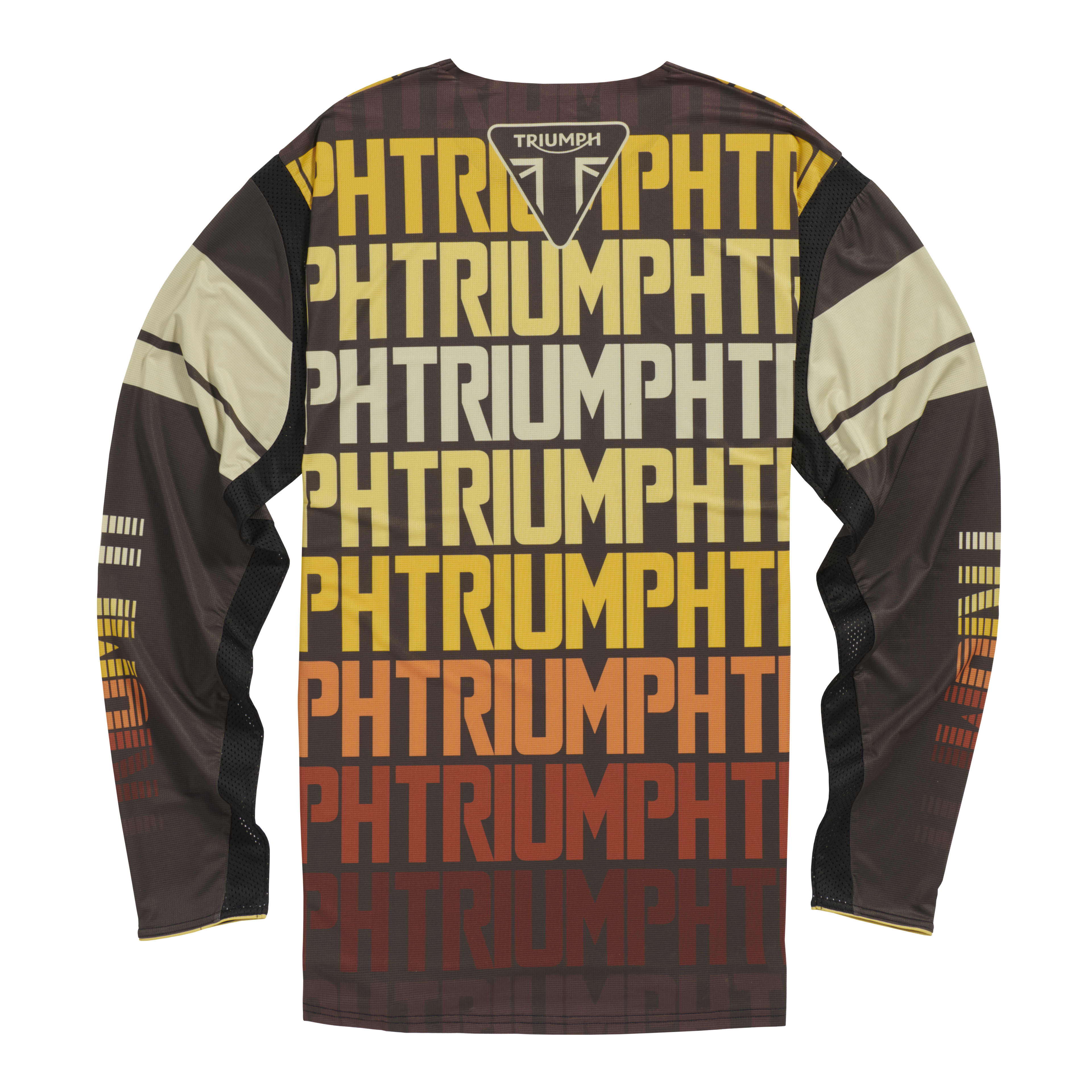 Featuring a striking ombre design using the Triumph logo throughout jersey, in yellow and orange.