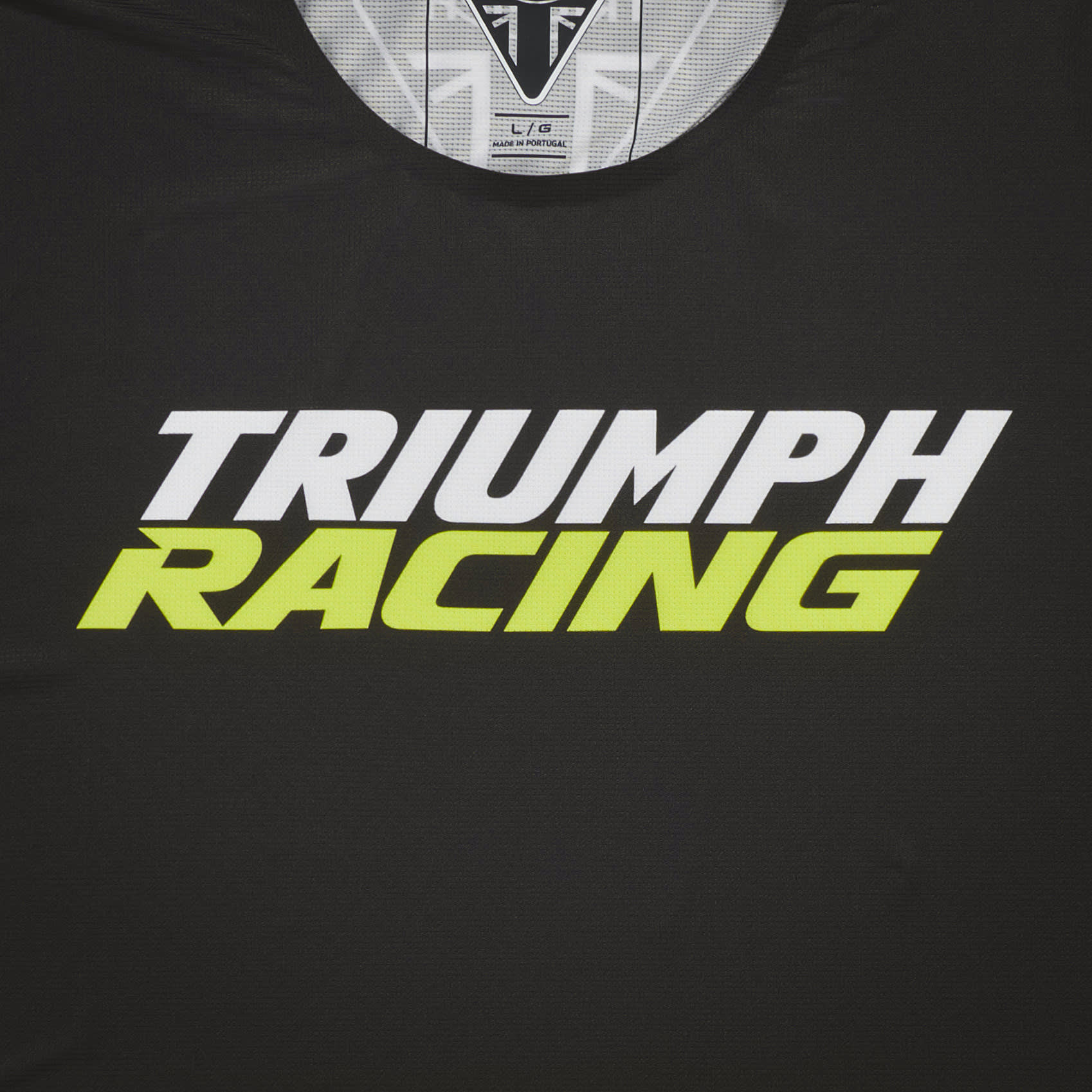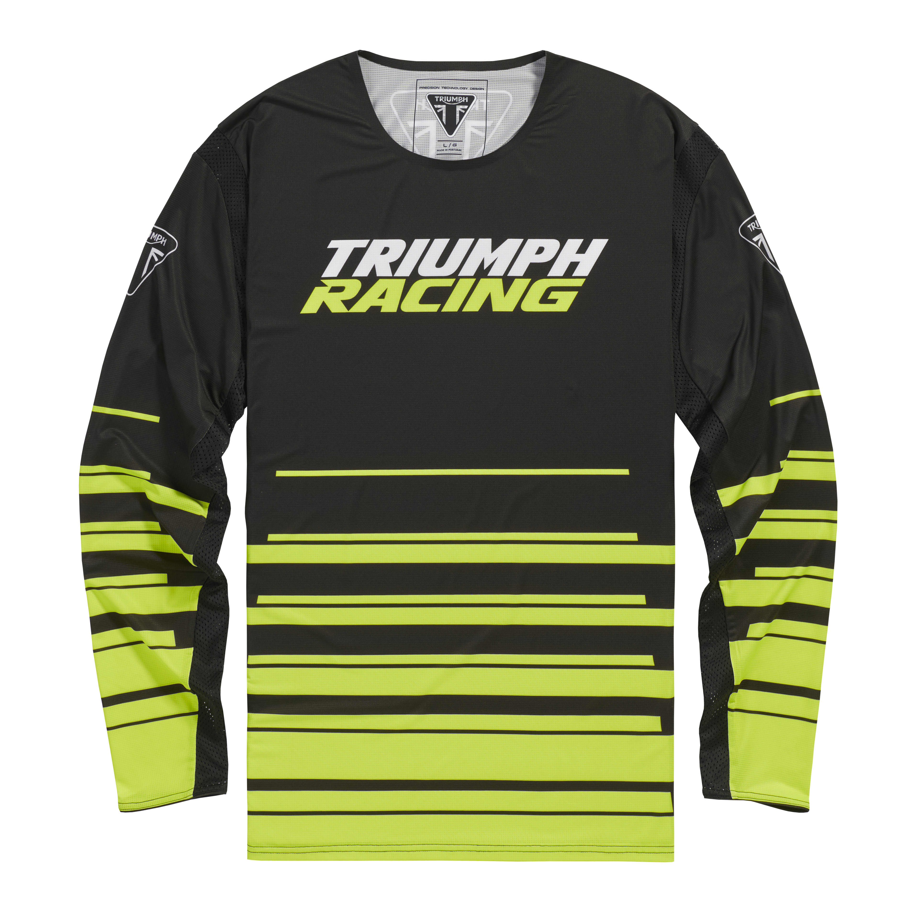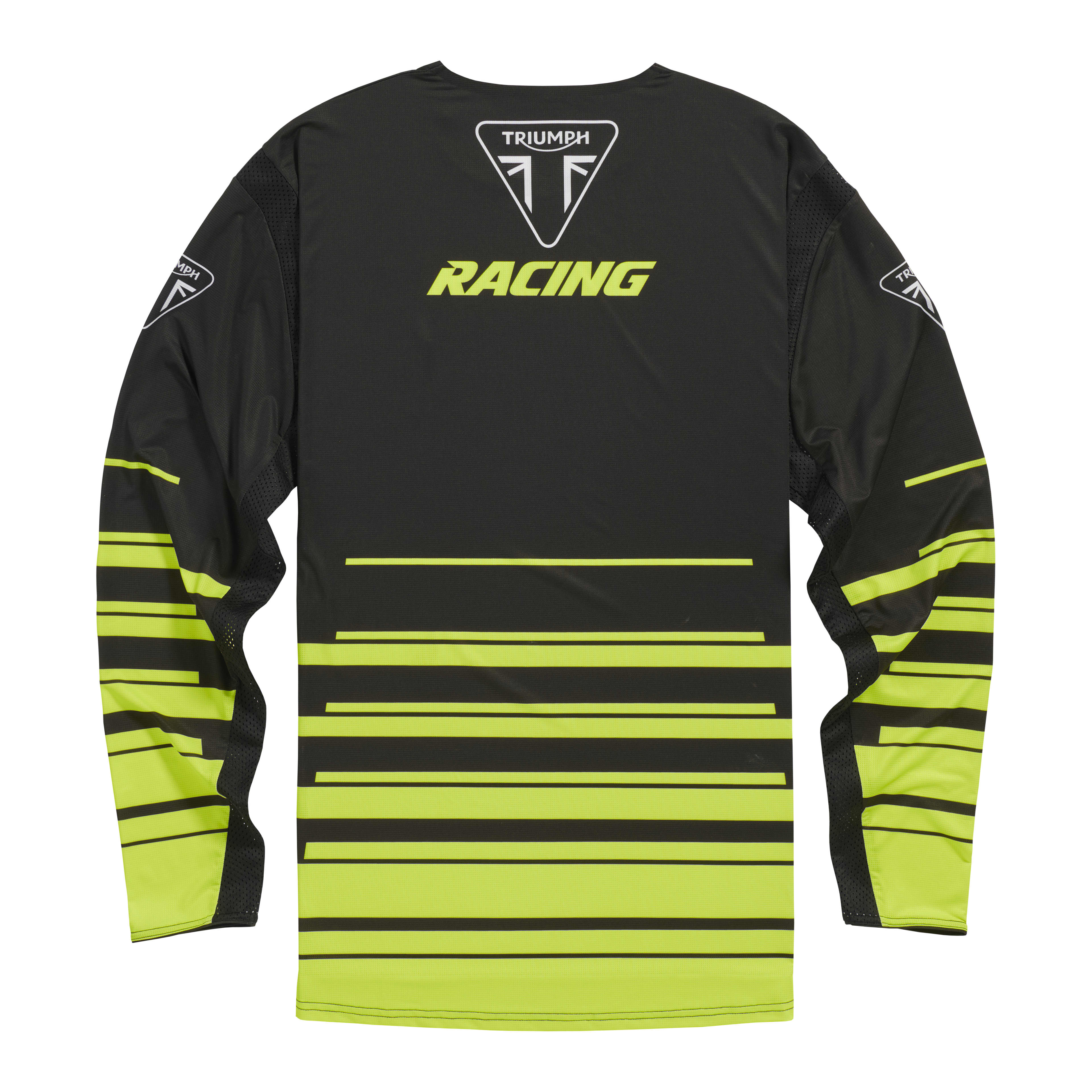 Our off-road jerseys are constructed from ultra-light advanced polyester stretch mesh, with shaped back panel for a secure and comfortable fit. Each jersey features bold Triumph Racing branding and the iconic fluorescent yellow, black and white colour scheme.