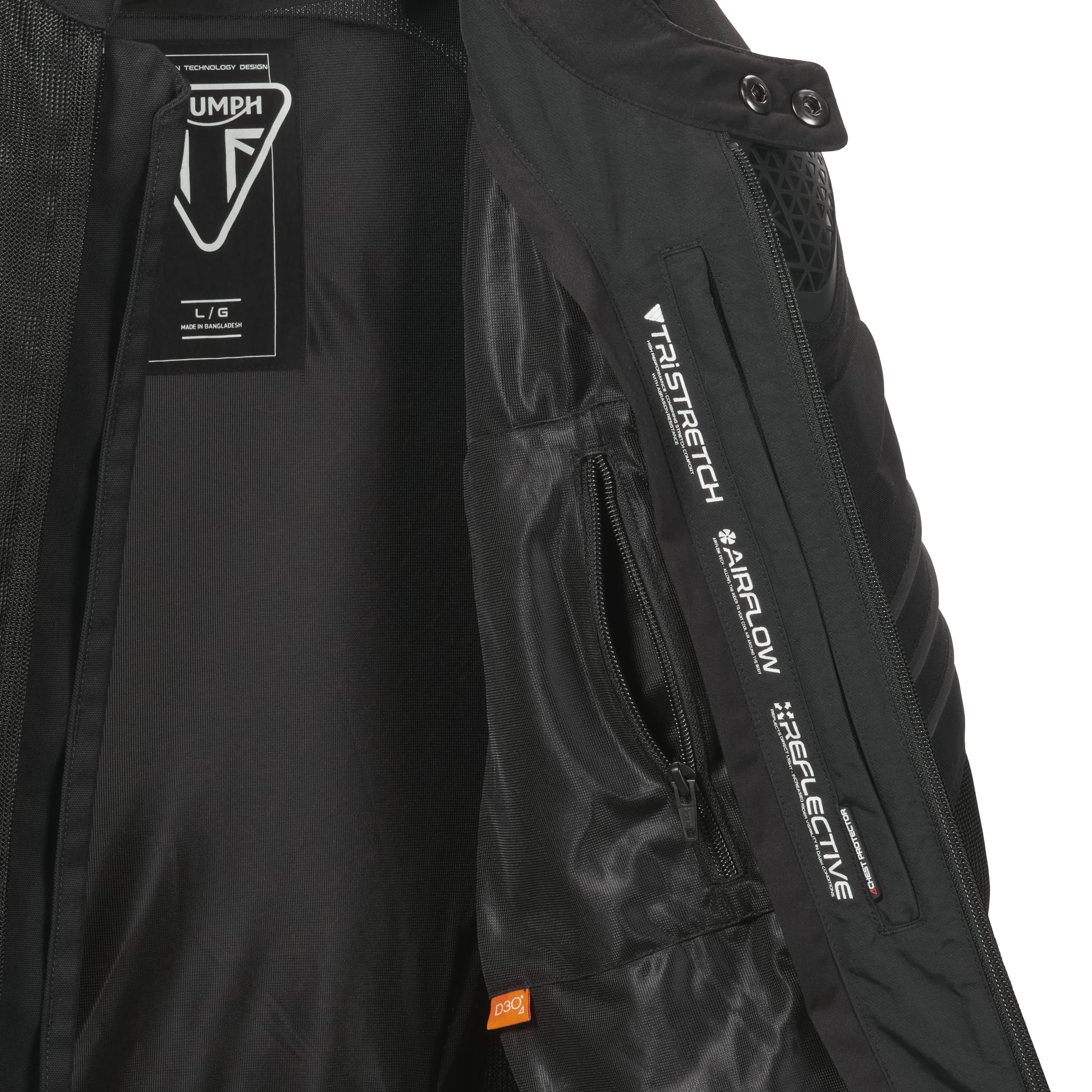 This garment includes D3O® providing the highest standards of rider impact protection